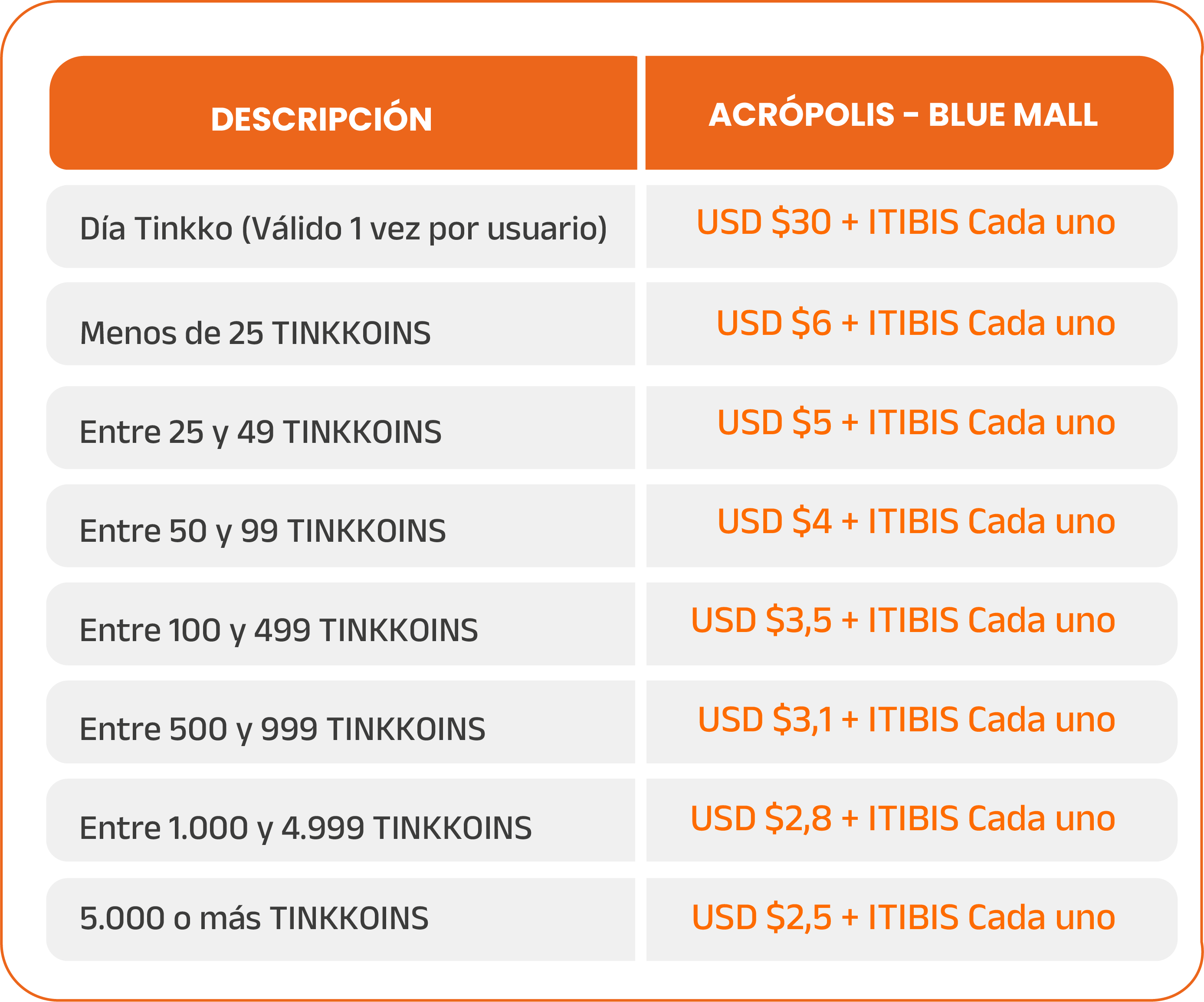 se tomará a valor de un tinkkoin por persona.