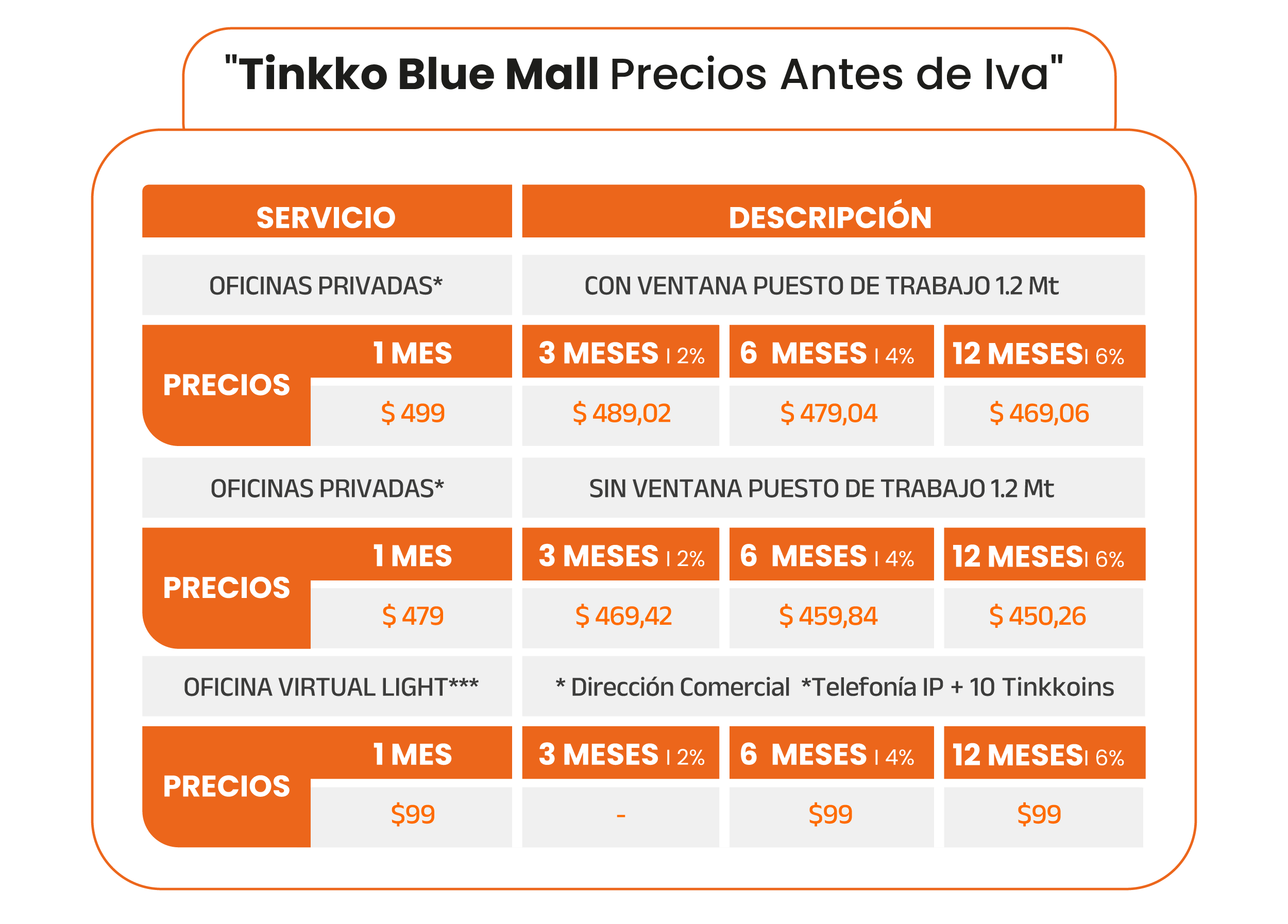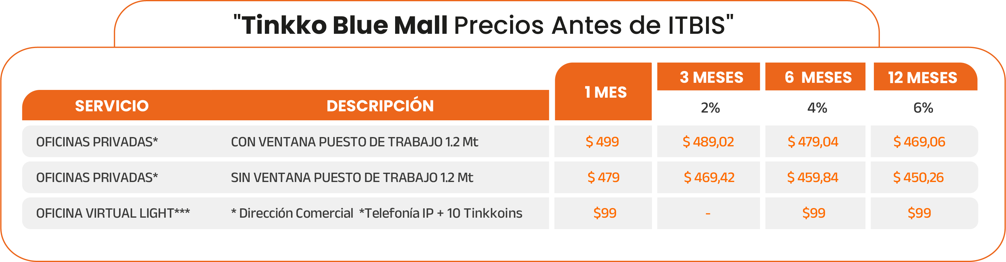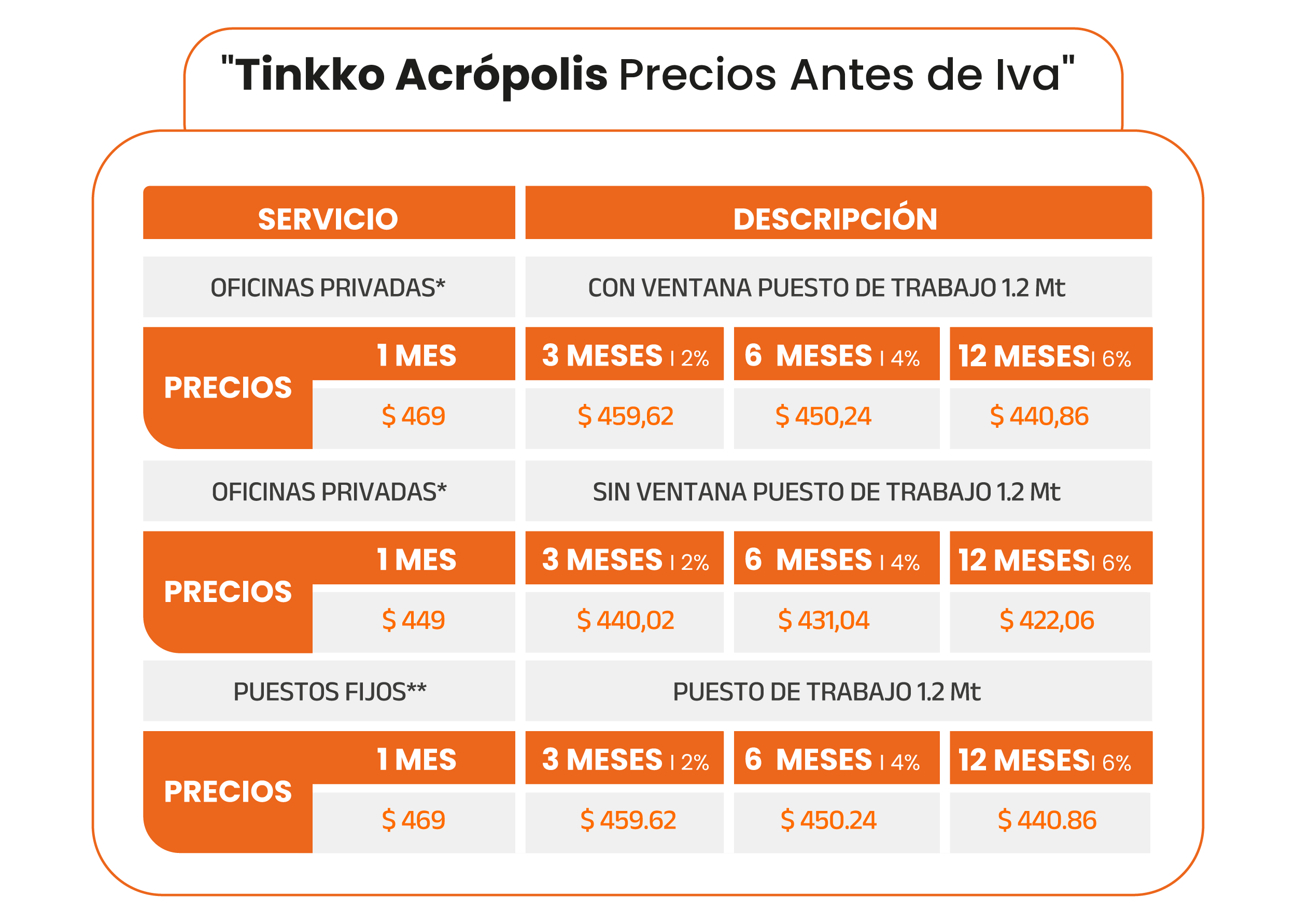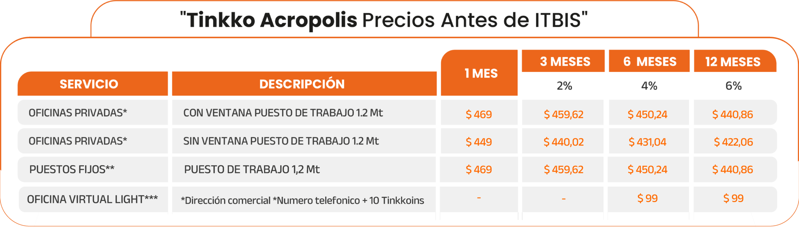 El plan de Tinkkoins no recurrentes, tiene un único uso para espacios flex o salas de reuniones.