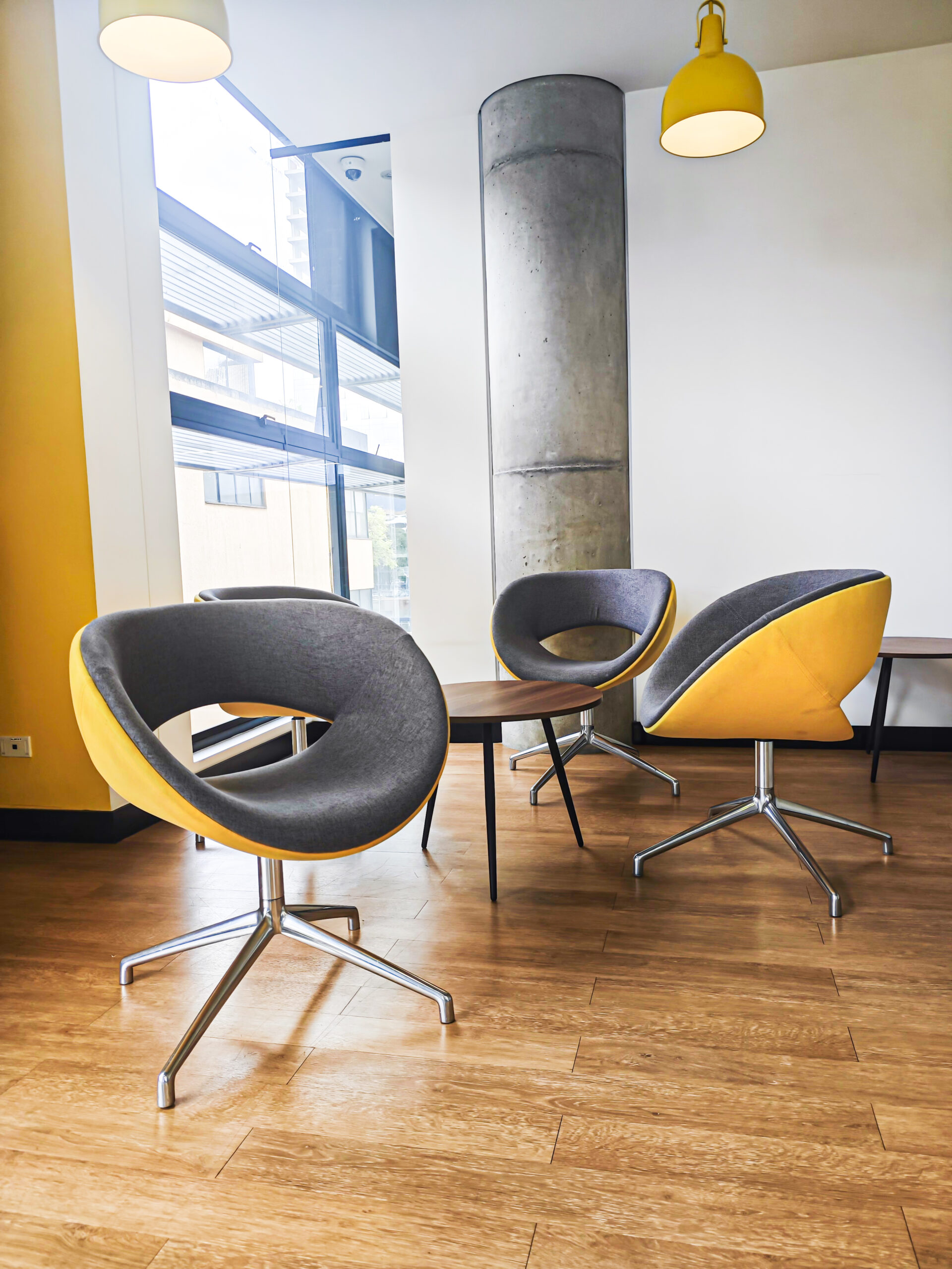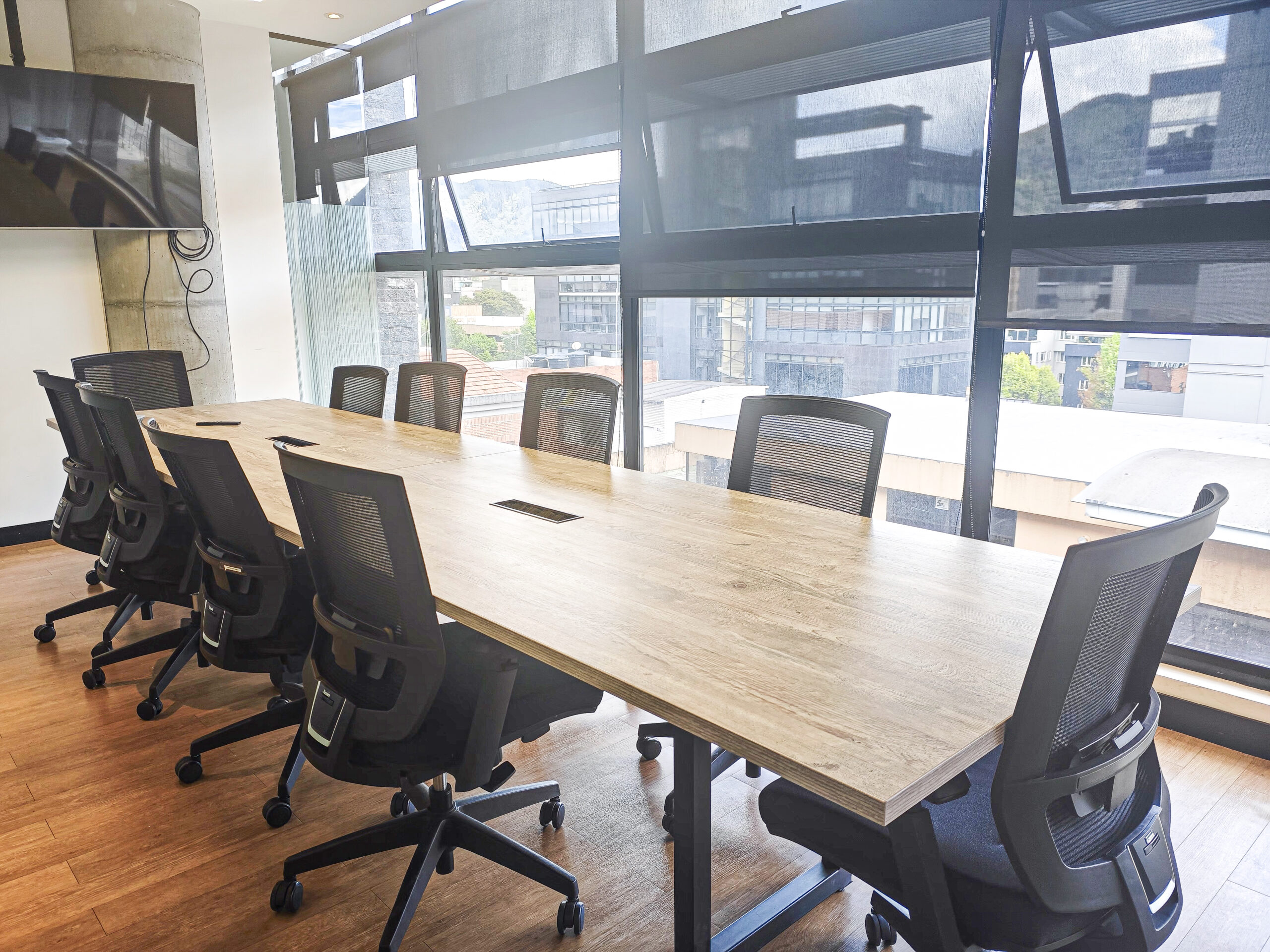 Puestos de trabajo con escritorios modernos, acompañados de una vista unica